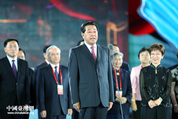 16日,第四届海峡论坛在厦门国际会展中心举行开幕式。图为中共中央政治局常委、全国政协主席贾庆林宣布开幕。(中国台湾网 王伟 摄)