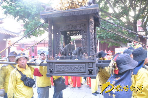 汇集千余名信众的台湾新港奉天宫,首次和分灵到福建的第一家妈祖宫庙的永春陈坂宫合体进行了妈祖的巡境,报马仔、路扫、头旗、头灯、金虎爷会、舞凤轩、威扬团……首度合体巡境的“法器队”,由手持36个哨角、2个马头锣,分列2队形成。“妈祖信仰在台湾有着很浓厚的氛围,而其的发祥地在此,所以我们这次来汇集了台湾各地奉天宫的宫友宫庙,一起来进行妈祖文化的交流。”台湾新港奉天宫的阮国峰告诉记者。巡境过程中,“金虎爷爱吃炮”的表演最为吸引人,只见信众在地上铺满像地图一样的鞭炮,中间放一堆,抬着金虎爷的信众踩着点燃的鞭炮走向天后宫,其精彩的表演博得喝彩声一片。