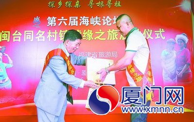 探乡探亲,寻祖寻根。昨晚,“2014闽台同名村镇续缘之旅”欢迎仪式在厦门举办,福建省旅游局局长朱华、副局长陈奕辉,省台办相关负责人,厦漳泉三地的旅游局领导,闽台同名村镇乡亲等约400人参加了欢迎仪式。