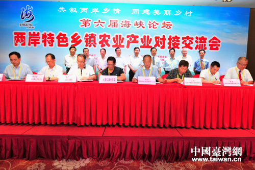 53对闽台特色乡镇的农业产业代表在主会场签订对接合作交流协议。(中国台湾网 发)