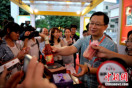 6月10日,台湾桃园县长吴志扬在厦门亲自上阵推销桃园特色美食。据厦门边检人士介绍,预计11日还将有无党团结联盟林炳坤等台湾贵宾从厦门空港入境。除了参加论坛的台湾贵宾,各界台湾民众也循“小三通”、空中直航等渠道陆续抵达厦门。