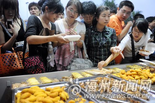 说起台湾夜市的小吃,蚵仔煎、臭豆腐这些耳熟能详的名字都跳了出来。但是,对于绝大多数福州人来说,这些美食都是“听到楼梯响,不见人下来”。这次机会来了,在家门口的庙会终于可以让人们大快朵颐了,蚵仔煎等摊位前也总是排着长龙。