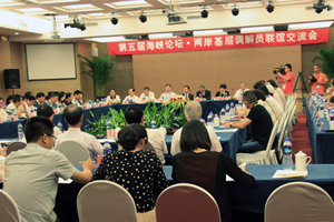 第五届海峡论坛活动之一:两岸特色乡村对接暨农民合作组织发展交流会15日上午在厦门举行。来自大陆的农业专家、基层农技干部、福建农民合作社的代表,与来自台湾中南部基层的农民、农会、农业产销组织的代表及在大陆发展的台湾农民等,共200多人参加了交流会。会上,50家福...
