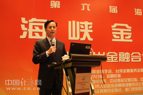中国经济网厦门6月15日讯(记者 张海蛟 蔡情) 台湾金融服务业联合总会秘书长廖灿昌今天在厦门举办的第六届海峡论坛·海峡金融论坛做了主题演讲。在演讲中廖灿昌提出一个建议:能否考虑一下把QFII和服贸做切割,加速RQFII尽快入台。