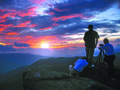 云雾。鼓岭春季常被浓雾笼罩,但它不像庐山云雾那样常聚不散,使人难见其真面目;也不像泰山的浓雾和云海,有时使你伸手不见五指;更没有某些山海旅游地云雾的那种硝烟和咸腥味。鼓岭云雾来去定时、聚散有常,一般是半夜升起,次日早晨消散。雨天云雾缥缈如丝,逢旭日晨曦即化为彩霞,金光万道。在月光如水的夜晚,漫步林间,常会看到淡蓝色的雾从谷底升起,悠悠荡荡涌来。云雾,使鼓岭的山多了一份婀娜和含蓄。