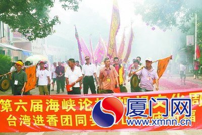 乡音缭绕,乡情弥漫。昨日上午,来自台湾妈祖联谊会、三清总道院、道教协会等近百座宫庙的约3200多名信众浩浩荡荡奔赴同安东山古庙上香献礼,进行祈福活动。昨晚,台湾兰阳戏剧团歌仔戏在同安上演。