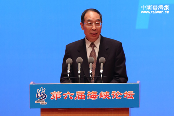 中共福建省委书记尤权在第六届海峡论坛大会上发言。(中国台湾网于斯文 摄)
