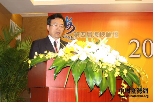 中国侨联副主席李卓彬在四届海峡论坛·两岸侨联和平发展论坛上致辞。(中国台湾网 张洁 摄)