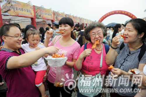 福州新闻网讯 17日,闽台(福州)特色庙会在北江滨公园望龙台继续进行。近万名市民来到北江滨公园,逛庙会品美食,让美味在舌尖上滑行。