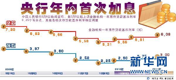 这是中国央行今年以来首次加息,也是2010年以来第三次加息。央行曾于去年10月19日和12月25日分两次上调利率。