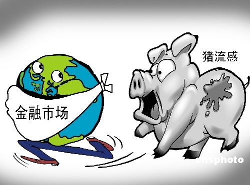 漫画:猪流感疫情惊动世界 金融市场拉响警报。 中新社发 宋学海 作