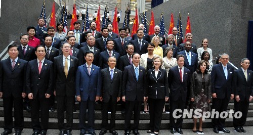 首轮中美战略与经济对话7月27日在华盛顿开幕。图为与会方会前拍摄“全家福”。 中新社发 李静 摄