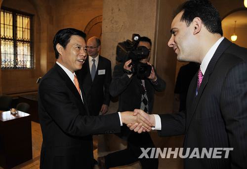 3月24日,在美国首都华盛顿,中国商务部副部长钟山(左)出席美国工商界举行的早餐会。钟山当日在早餐会上发表演讲指出,中美应努力寻求和扩大利益汇合点,坚持通过沟通协商妥善处理经贸摩擦。他强调,人民币升值并非解决中美贸易不平衡的良方。新华社记者张军摄