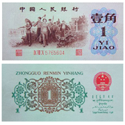 壹分、贰分、伍分、壹角、贰角、伍角和拾圆券的7个版别的正面,分别采用了汽车、飞机、轮船、拖拉机、火车、水电站和工农业生产丰收的图景;伍圆券的正面是各民族大团结的图案;叁圆券、贰圆券及红、黑两版壹圆券中的图案分别是井冈山龙源口桥、延安宝塔山和天安门。