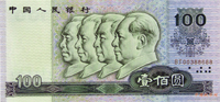 一点:100元的正面是新中国四位重要领导人毛泽东、刘少奇、周恩来、朱德的侧面头像,表达了对党领导的中国革命和建设光辉历史的充分肯定;50元券的正面是工人、农民和知识分子并列的头像,强调知识分子属于工人阶级的一部分,这是思想认识上的一项重大的拨乱反正;10元券以下票面的正面都是具有代表性的民族人物的头像。