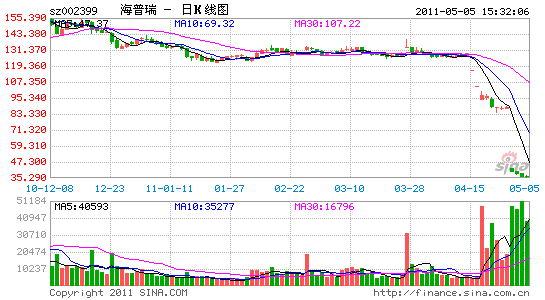 走下神坛的海普瑞,昨天的收盘价为35.65元,复权后股价为73.3元,较当初148元的发行价已经拦腰折断。由于股价不断下跌,海普瑞掌门人李锂(专栏)夫妇的身家也缩水过半。