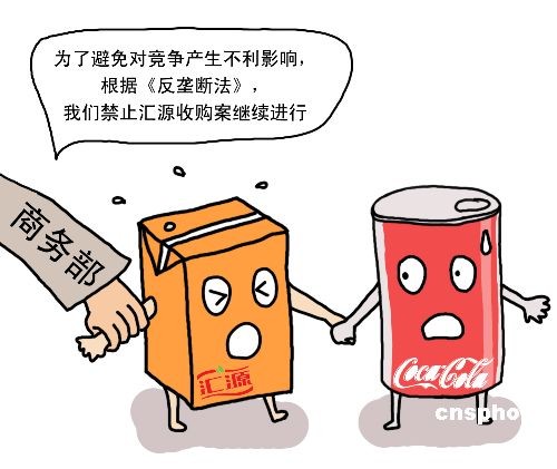 周三中国商务部正式宣布,根据中国反垄断法禁止可口可乐收购汇源。当日上午,汇源股价开盘大跌19%后紧急停牌。