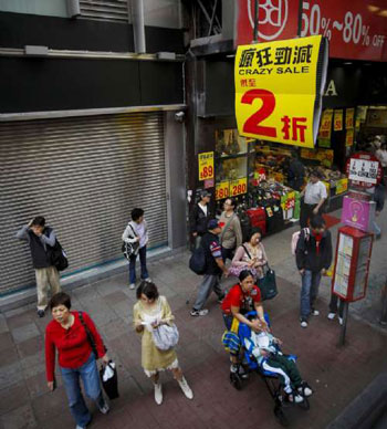 香港经济持续下滑,商户唯有以减价吸引市民消费。(图片来源:大公报)