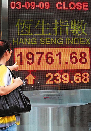 中新网9月4日电 据香港《文汇报》报道,A股劲升5%,带动港股3日一度上升300点,高见19823点,全日收报19761.6点,升239.6点,成交额580亿元。不过,期指大低水192点,对4日市况构成隐忧。