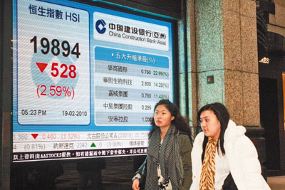 中新网2月20日电 据香港《文汇报》报道,美国突然调高贴现利率,市场担心美国会提早退市及加息,港股急跌528点,失守20000点,跌幅达2.6%,是19日亚太区股市中表现最差的市场。香港地产股、内银股及资源股成为跌市重灾区,成交淡静只有430.7亿元。