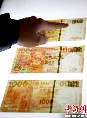 中新网11月25日电 据香港星岛日报报道,香港金管局联同三家发钞银行,将于下月七日推出新设计的一千元钞票供巿民兑换。首批七千多万张新钞票,会由三家发钞银行分批发行,旧款钞票仍然流通。新一千元钞票共有八项防伪特征,香港印钞有限公司特别购入新机械及贵价油墨印制新钞,造出移动钞票时有一条光纹于图案上下滚动的效果;新钞纸质较厚,会更耐用,“寿命”可延长三成。