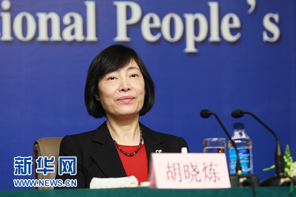 2011年3月11日10:45,十一届全国人大四次会议新闻中心在梅地亚举行主题为“货币政策及金融问题”记者会。人民银行行长周小川、人民银行副行长胡晓炼、人民银行副行长刘士余、人民银行副行长兼国家外汇管理局局长易纲出席记者会接受媒体采访。图为中国人民银行副行长胡晓炼。新华网 吴莼摄