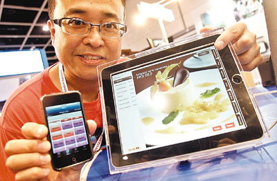 有参展商展出最新的“iPad点菜系统”,方便顾客点菜。香港文汇报记者梁祖彝 摄