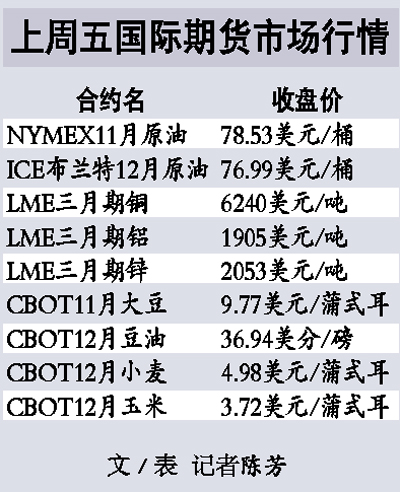 受到多重利好的推动,纽约商业期货交易所(NYMEX)11月原油期货走出“七连阳”,上周五报78.53美元/桶,为2008年10月14日以来的最高收盘价,当日最高达到78.67美元/桶。