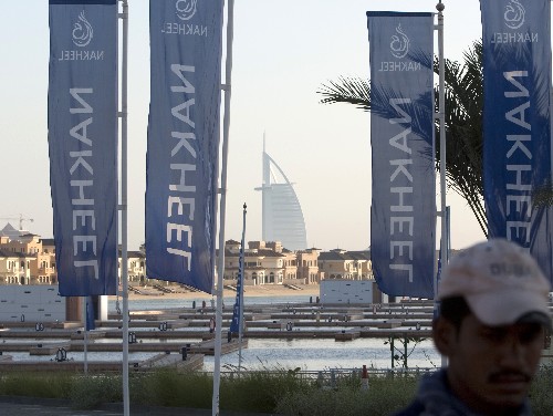 12月14日,阿联酋纳希勒公司的旗帜在朱迈拉棕榈岛上飘扬。纳希勒是迪拜世界集团旗下的房地产公司。当天,阿联酋迪拜政府发表声明说,阿布扎比已决定向迪拜提供100亿美元援助资金,用以支付迪拜世界集团的部分债务,帮其渡过债务危机。 新华社/路透