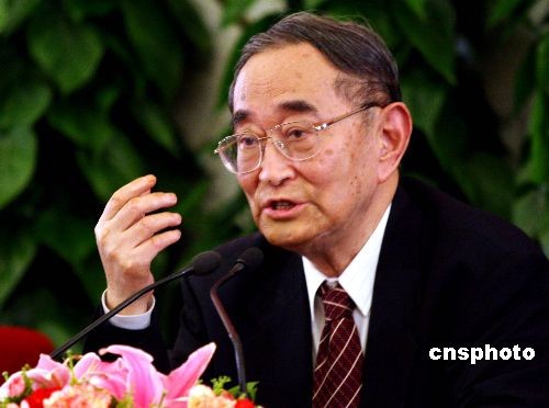 全国政协常委、著名经济学家厉以宁在3月6日下午举行的全国政协十一届二次会议记者会上说,当前楼价居高不下,原因是地价高。他还回答了关于上调资源增值税的说法和提高劳动收入在国民收入中分配比例等问题。 中新社发 宋吉河 摄