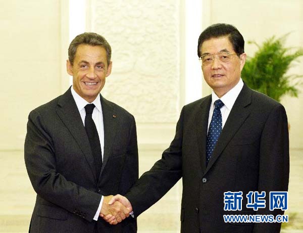 8月25日,中国国家主席胡锦涛在北京人民大会堂会见法国总统萨科齐。(新华社记者李学仁摄)