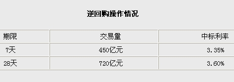 中新网12月6电 央行网站今日公告,人民银行于本周四(12月6日)以利率招标方式开展总额1170亿元逆回购操作。 其中,7天期逆回购450亿元,中标利率3.35%;28天期逆回购720亿元,中标利率3.60%。(中新网金融频道)
