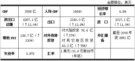 2006年台湾主要经济指标