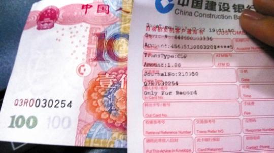 ATM打印冠字号 取钱...