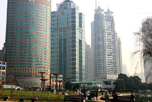 这是上海浦东陆家嘴金融贸易区写字楼一景。高力国际1月15日发布的上海写字楼报告显示,2008年第四季度,上海甲级写字楼的平均租金为每天8.1元/平方米,较上季度大幅下调21.6%,完全抵消了2008年前三季度的涨幅租金水平回到2007年。(新华社记者 陈飞 摄)