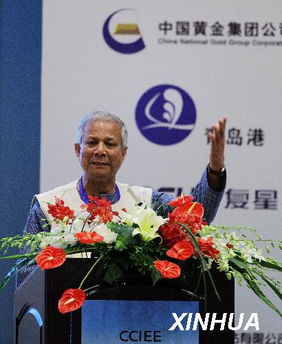 新华网,北京,2009年7月2日 诺贝尔和平奖得主尤努斯在发表主旨演讲。新华社记者 邢广利 摄