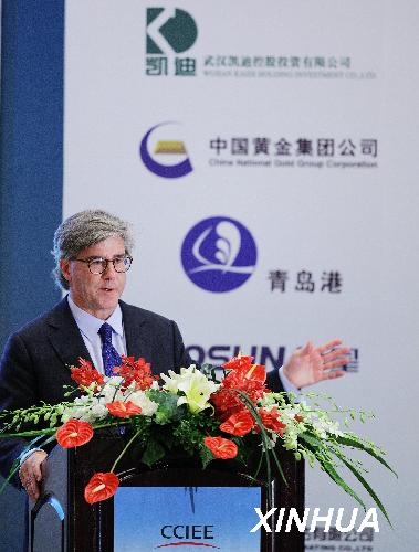新华网,北京,2009年7月2日 美国布鲁金斯学会主席桑顿在发表主旨演讲。新华社记者 邢广利 摄