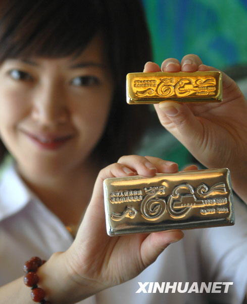 7月14日,工作人员展示新中国成立60周年纪念金银条龙腾系列。由中国印钞造币总公司制造发行、中钞国鼎公司总经销的中华人民共和国成立60周年纪念金银条,将于7月23日在北京菜百商场首发。该套产品分为龙腾系列和凤舞系列。新华社发