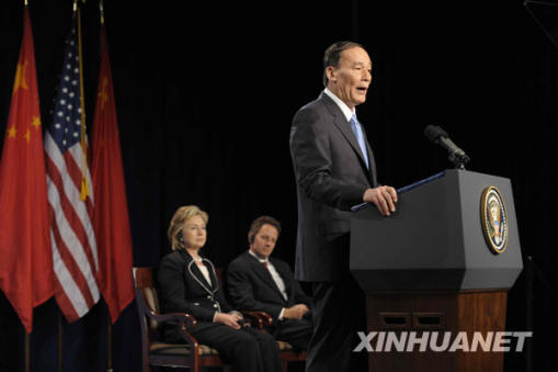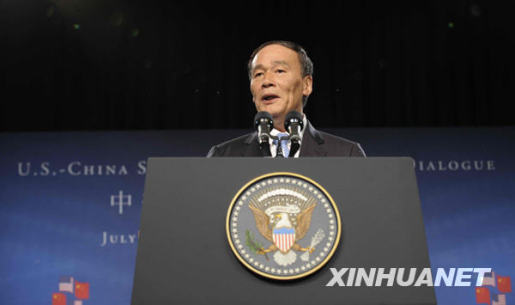 7月27日,中国国家主席胡锦涛特别代表、国务院副总理王岐山在首轮中美战略与经济对话开幕式上讲话。当日,首轮中美战略与经济对话在美国华盛顿开幕。新华社记者张岩摄