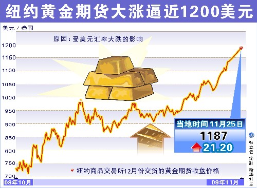 图表:纽约黄金期货大涨逼近1200美元 创纪录