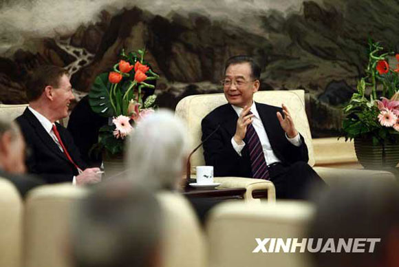 新华网北京3月22日电(记者赵承、谭晶晶)国务院总理温家宝22日下午在人民大会堂会见了出席中国发展高层论坛2010年会的境外代表,就世界经济形势,尤其是中国继续应对国际金融危机、保持经济平稳较快发展、加快转变经济发展方式以及推动国际经济金融合作等问题,与他们进行深入交谈。