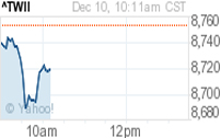 台北股市加权指数2010.12.08