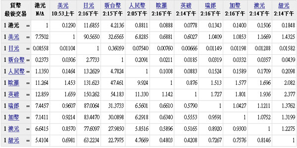 主要货币汇率