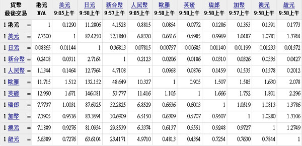 主要货币汇率