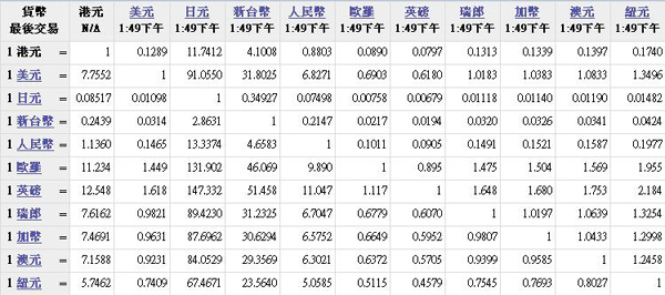 主要货币汇率