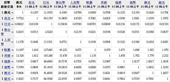 主要货币汇率