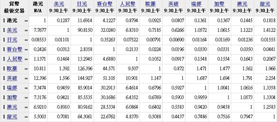 主要货币汇率