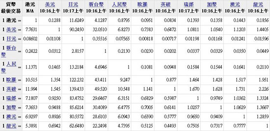 主要货币汇率