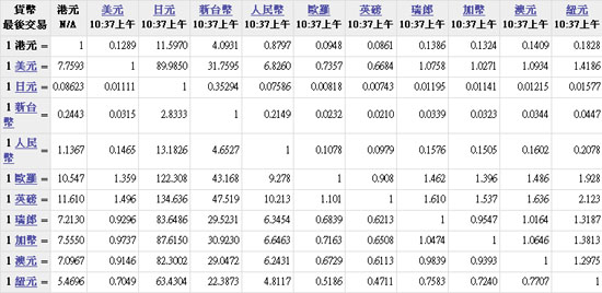 主要货币汇率