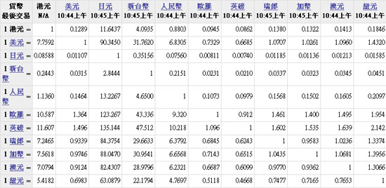 主要货币汇率